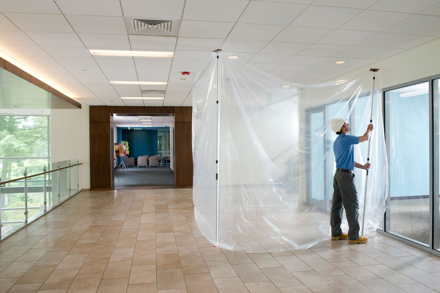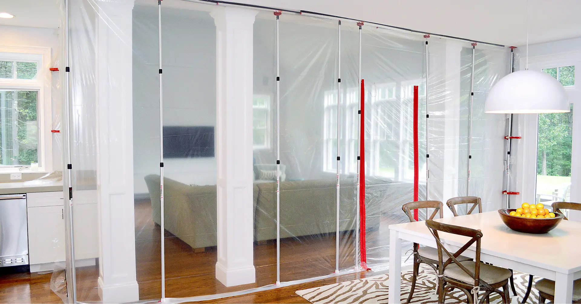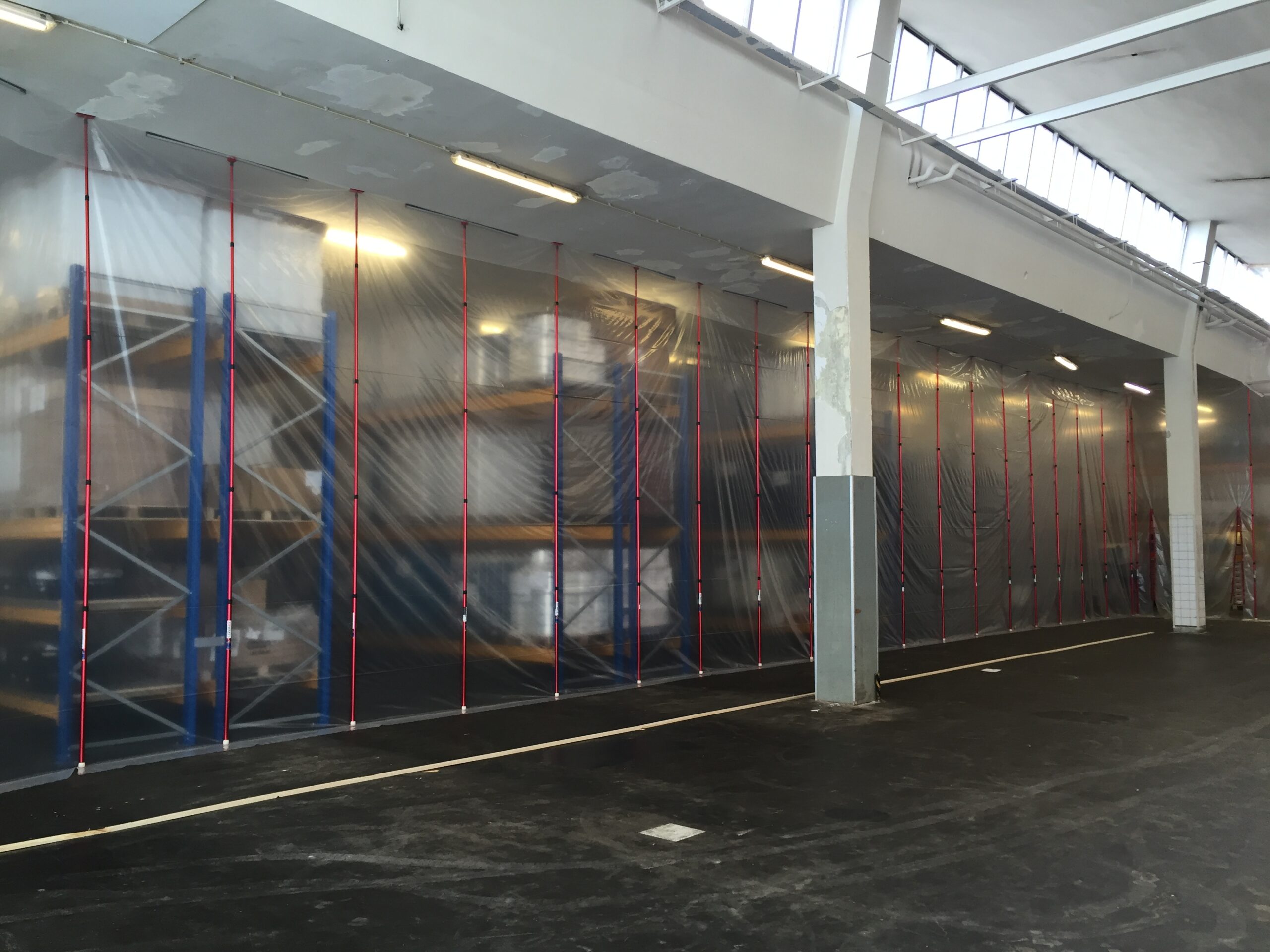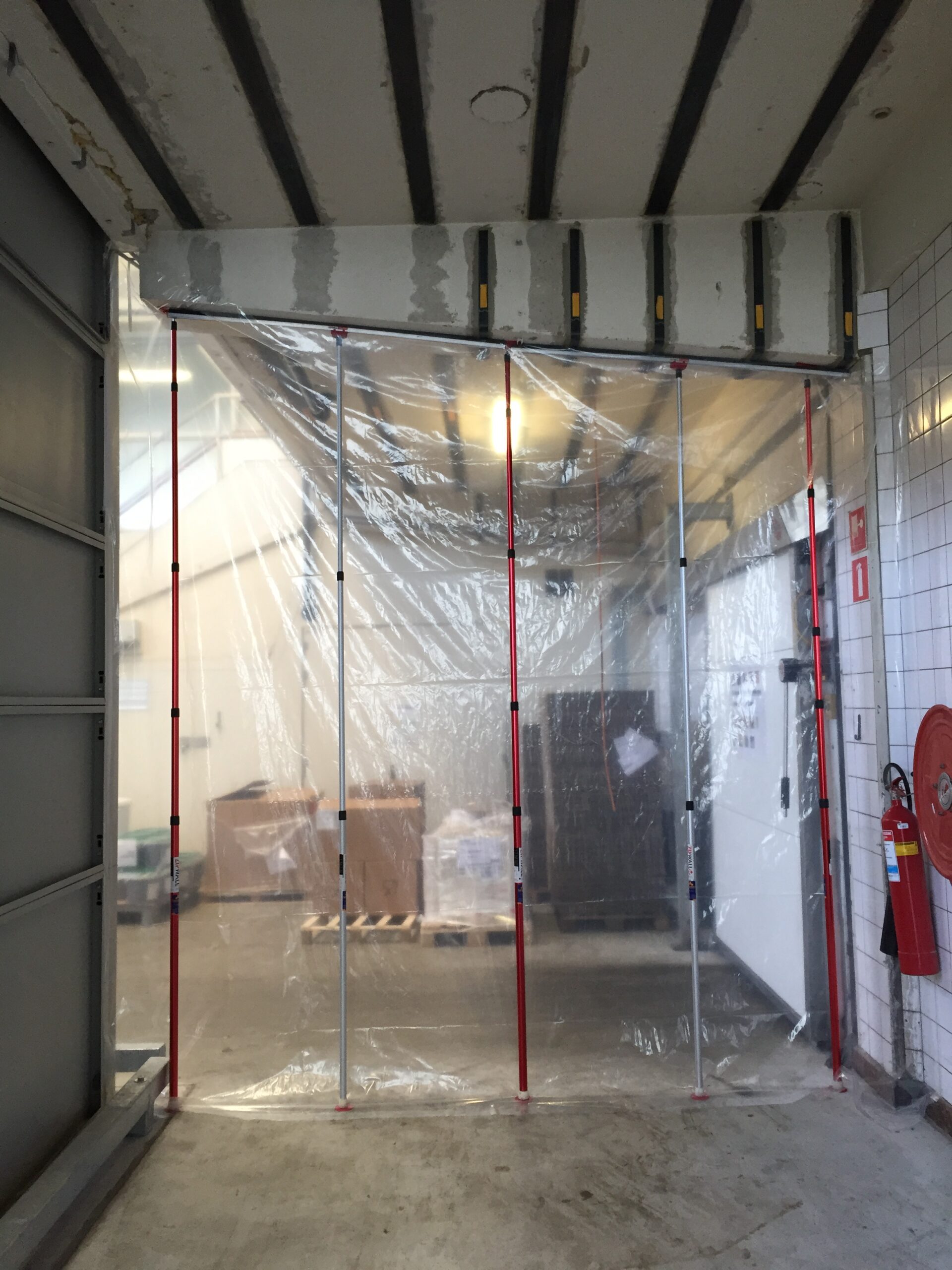 Vzmetne palice za postavitev protiprašnih pregrad.