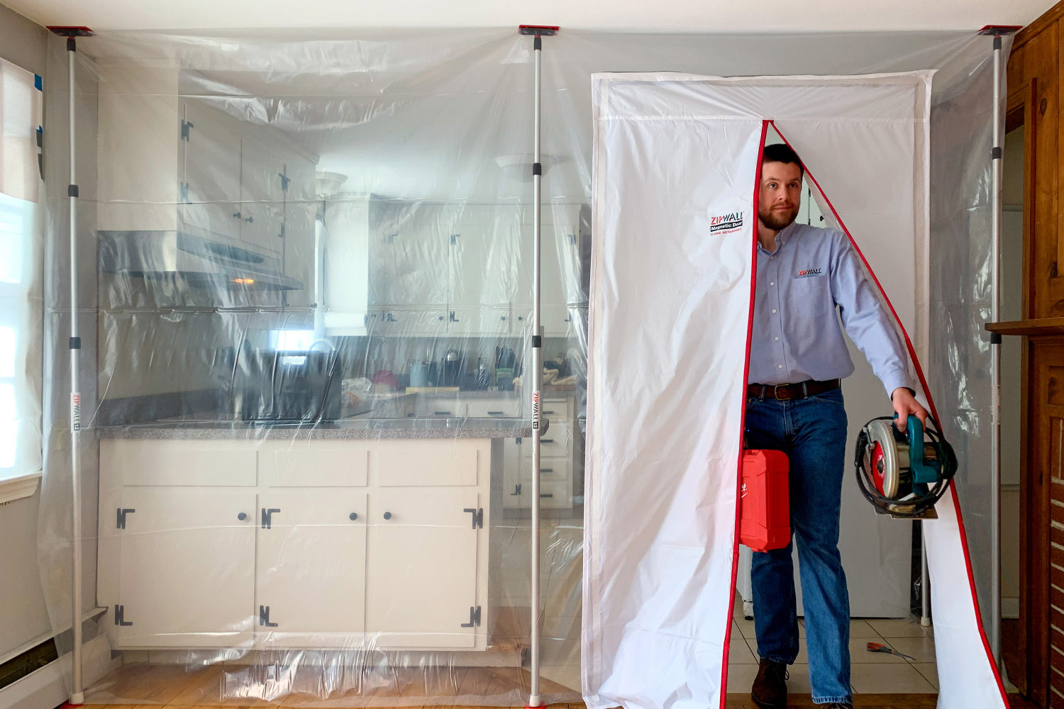 Protiprašne zapore ZipWall® je mogoče postaviti v samo nekaj minutah, brez uporabe lestev, lepilnih trakov ali poškodb materialov, kamor zapore pritrjujemo.